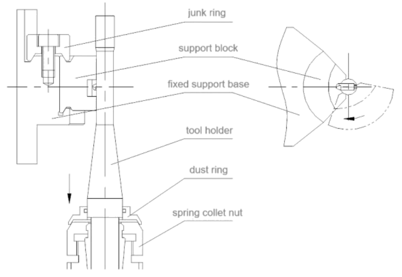 structure ساختار پشتیبانی برش پرواز بر روی ویژگی های همان نوع ابزارهای دستگاه در ایتالیا ترسیم می شود. بلوک پشتیبانی توسط یک سطح قوس پشتیبانی می شود ، که دارای اثر پشتیبانی خوبی است. برش آربور با یک مهره چاک بهاری ثابت است. در عین حال ، از یک نوک متحرک در بالای برش آربور برای بهبود استحکام و صحت پشتیبانی از آربور برش استفاده می شود. برش پرواز دارای ساختار معقولی است و به آن استحکام و دقت بالایی می بخشد.