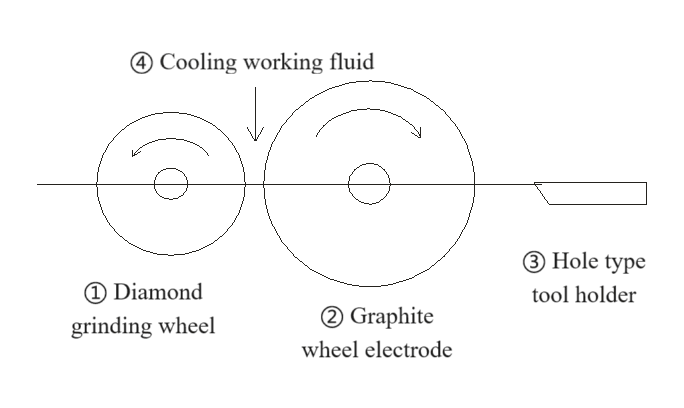 ② الکترود چرخ گرافیت: از یک چرخ گرافیتی استفاده کنید که به عنوان یک الکترود پردازش شود ، اصل ماشینکاری تخلیه را اعمال کنید و از یک جرقه برقی برای حذف بخشی از چرخ سنگ زنی الماس برای پردازش استفاده کنید. سوراخ بیرونی چرخ گرافیت چرخانده و توسط یک برش سوراخ بسته شده روی نگهدارنده ابزار تشکیل شده است.